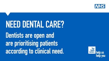To support NHS services, it is important that you do not visit hospitals or doctors’ surgeries with dental problems.